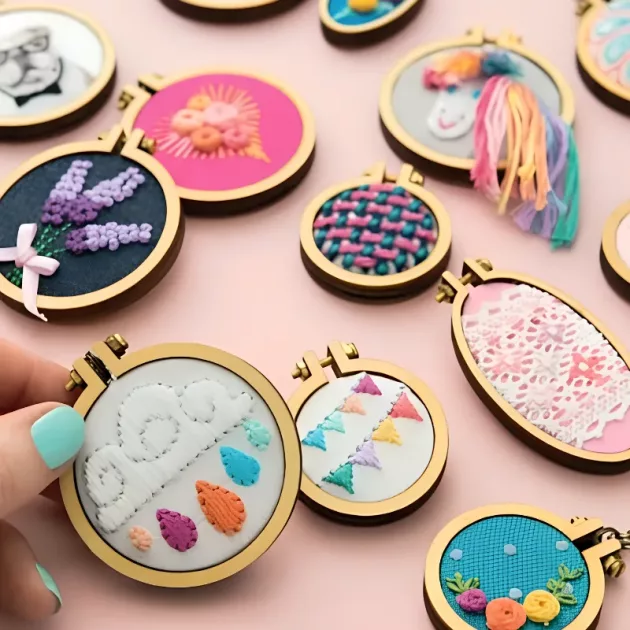 Sokoldalú bemutatás - A kész művek táskákat, szobákat díszíthetnek, vagy akár ékszerként is viselhetők. Minden keret egy kreatív próbálkozást varázslatos kiállítássá alakít.