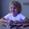 Ezeket a világító tollakat vettem az ikreim születésnapi diszkójára. Az UV-fény alatt élénken világítanak, könnyen lemoshatók, és nem irritálták az érzékeny bőrüket.