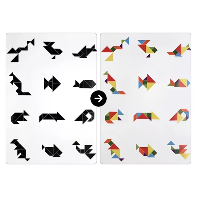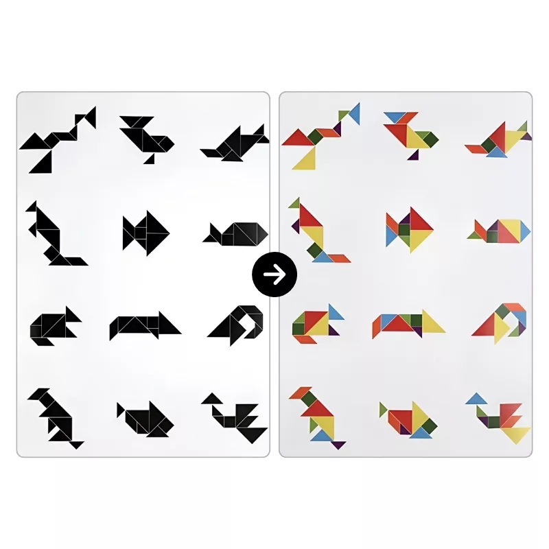 Ez a tangram játék órákig lefoglal engem és a testvéremet! Imádjuk kevergetni az alakzatokat, vicces állatokat és menő kirakókat készíteni. Nagyon szórakoztató.