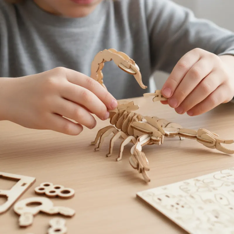 3D fából készült puzzle, DIY rovar modell építőkockák Montessori játék gyerekeknek