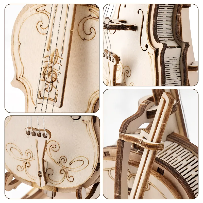 3D Fa Hegedű Modell Kirakó DIY Építő Blokk Készlet Oktató Játék Gyerekeknek
