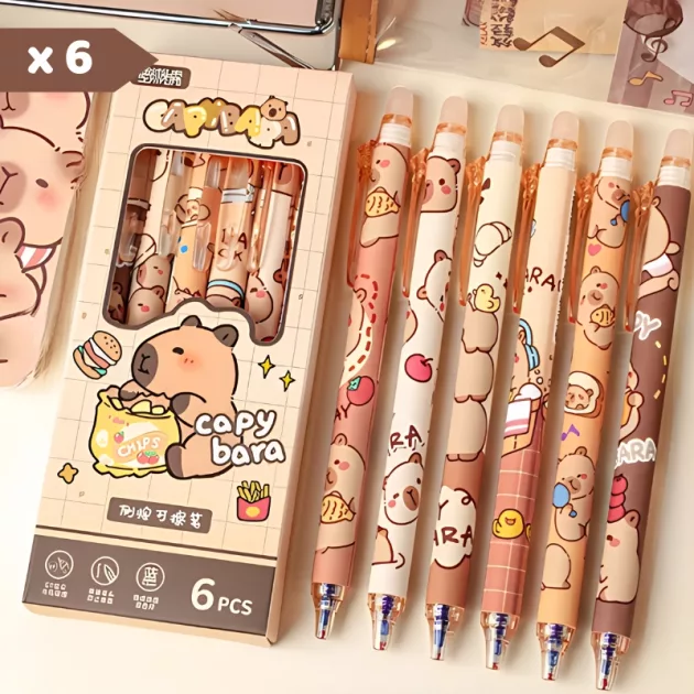 6 db-os aranyos kapibara radírozható zseléstoll készlet