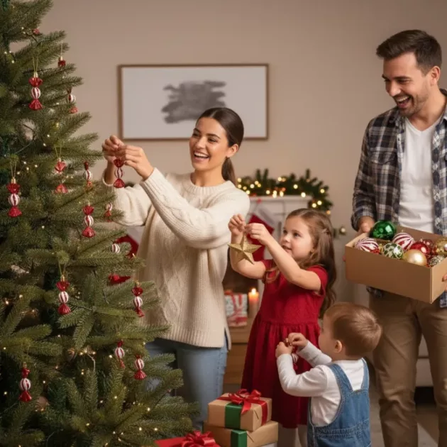 A piros és fehér díszeket tettem a fára, és az egész ház karácsonyi hangulatú lett. Nagyon gyengédek, a gyerekek is könnyen kezelhetik.