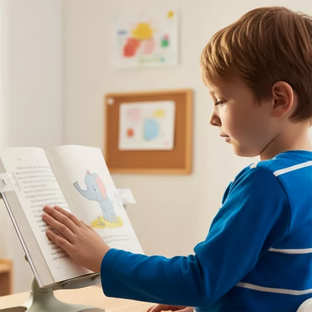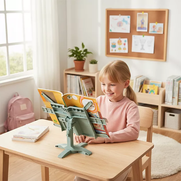 A gyerekek gyakran görnyednek, amikor hosszú ideig olvasnak. Ez a könyvtartó megfelelő magasságba és szögbe helyezi az olvasnivalót. A nyakuk és hátuk kényelmes minden tanulás alkalmával.