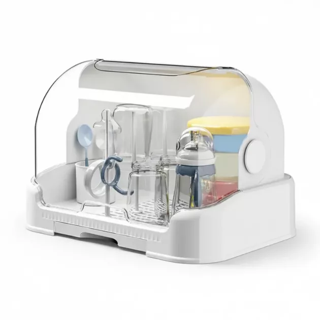Minden nap használom. Masszívnak érzem, könnyen tisztítható, és minden üveget, valamint cumit elfér benne rendezetten.