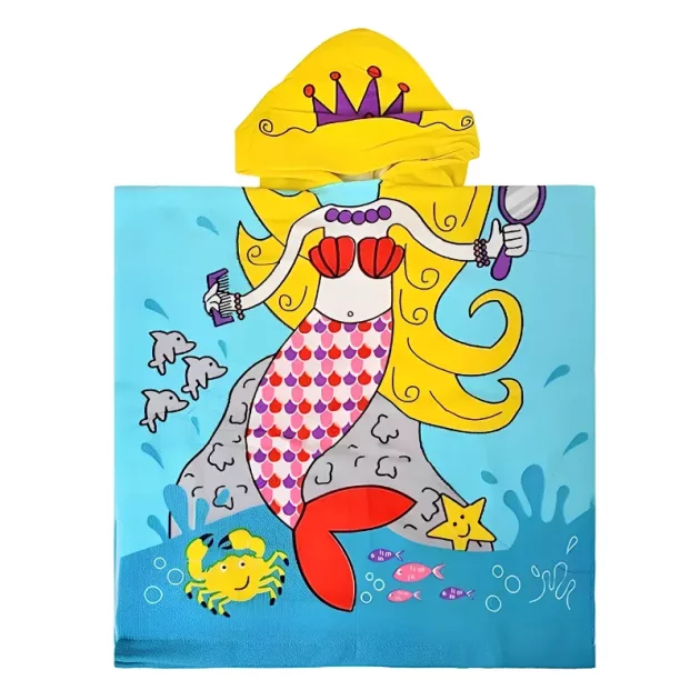 Ez a törölköző poncsó rendkívül egyszerűen használható. Csak feladom a lányomra, és már készen is van. Nem kell küzdeni a törölközőkkel futkosás közben.