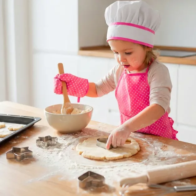 Nézd, ahogy gyermeked büszkén készíti a finomságokat! Ez a bájos készlet minden képzeletbeli sütés vagy keverés során megmozgatja a fantáziát. Játék közben segíti a tanulást és közelebb hoz egymáshoz, miközben örömteli pillanatokat osztotok meg. Minden darabot úgy terveztek, hogy órákon át tartó játékos izgalmat nyújtson.