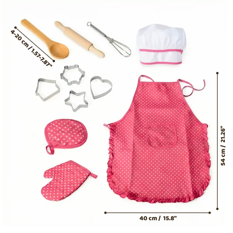 Nagyon szeretjük, hogy a kötény könnyen felvehető. A lányom hol szakács, hol segítő szerepben van. Szuper a beöltözős játékhoz.