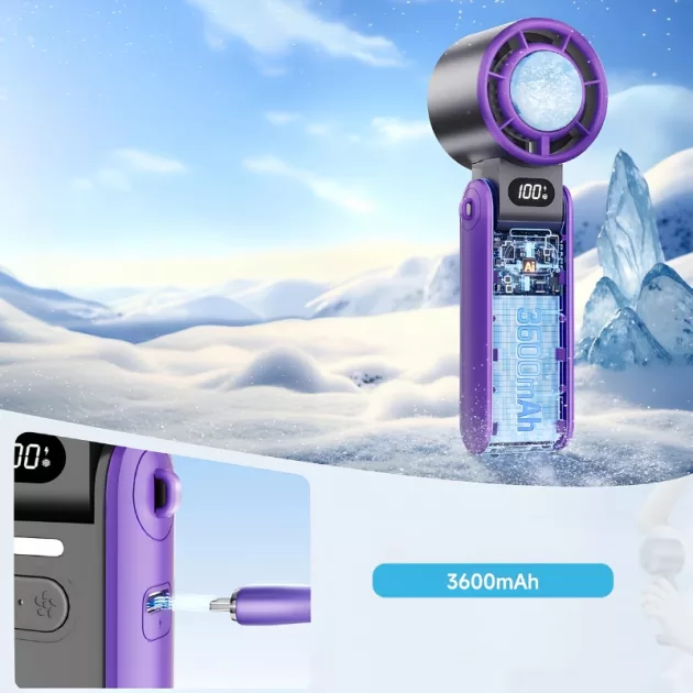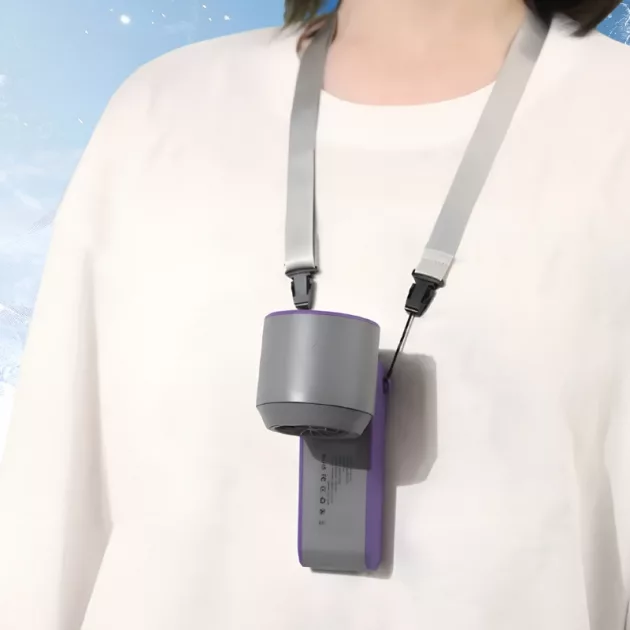 Rugalmas használat - A ventilátor könnyedén váltható kézi, nyakba akasztható vagy asztali mód között. Könnyű kialakítása és erős akkumulátora hosszú kalandokat is lehetővé tesz a szabadban.