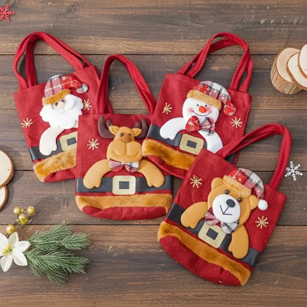 christmas gift bag, christmas cloth bag, christmas treat bags, christmas tote bags