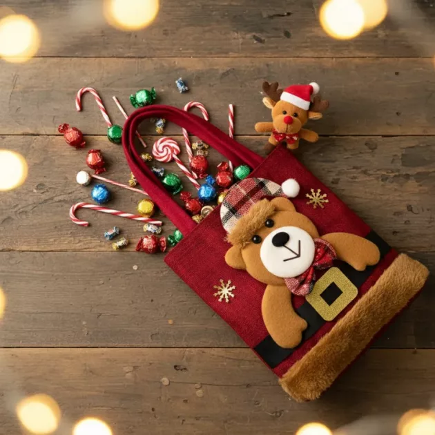 Karácsonyi Szövet Cukorka Táska Fülekkel