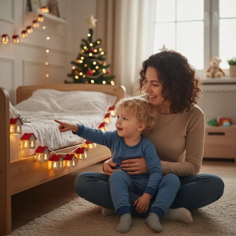 Nagyon egyszerű összerakni, és teljesen biztonságos a gyerekeim számára. A fa házikók gyengéd csillogása különlegessé tesz minden estét.