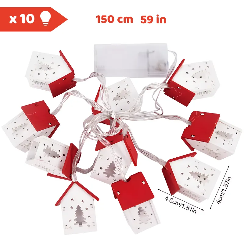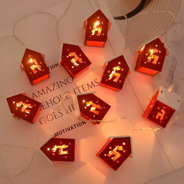 Karácsonyi Otthoni Dekoráció, Cuki Fából Készült Házikó Fényfüzér