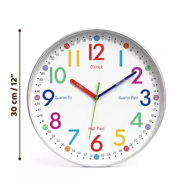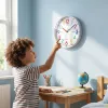 Szobabarát kialakítás - A könnyű keret biztonságosan akasztható fel anélkül, hogy nyomot hagyna a festett felületeken. A modern számlap jól illik hálószobákba, konyhákba és tantermekbe, vidám stílust adva minden helyiségnek.