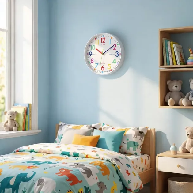 A világos számok minden pillantást egyszerű időértéssé alakítanak. Az egyértelmű jelölések segítik a percek gyors leolvasását, tartós magabiztosságot építve. A halk szerkezet nem vonja el a figyelmet, támogatja a nyugodt, koncentrált házi feladat készítést.