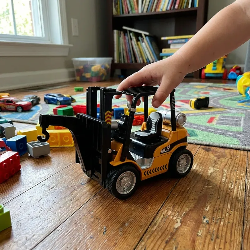 Az unokatestvérem mindig hozza a teherautót, amikor meglátogat, és játék kockákat pakolunk versenyben. A hang még szórakoztatóbbá teszi.