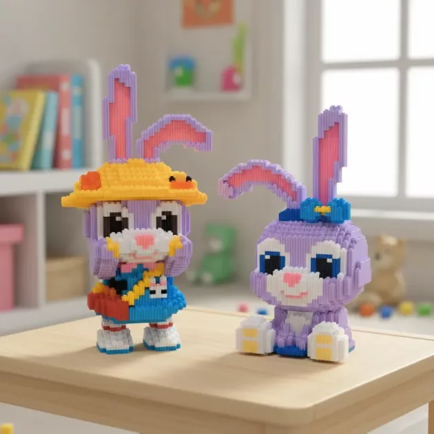 A nyuszis kockák annyira aranyosak és könnyen illeszkednek egymáshoz. A lányom nagyon kreatív lett, és alig akar abbahagyni újabb állatok építését.