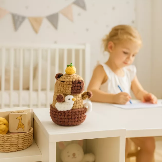 A kapibara készletben minden megtalálható, amire szükség van. Szereztem egy barátot, és most még több fonal állatot szeretnék készíteni.