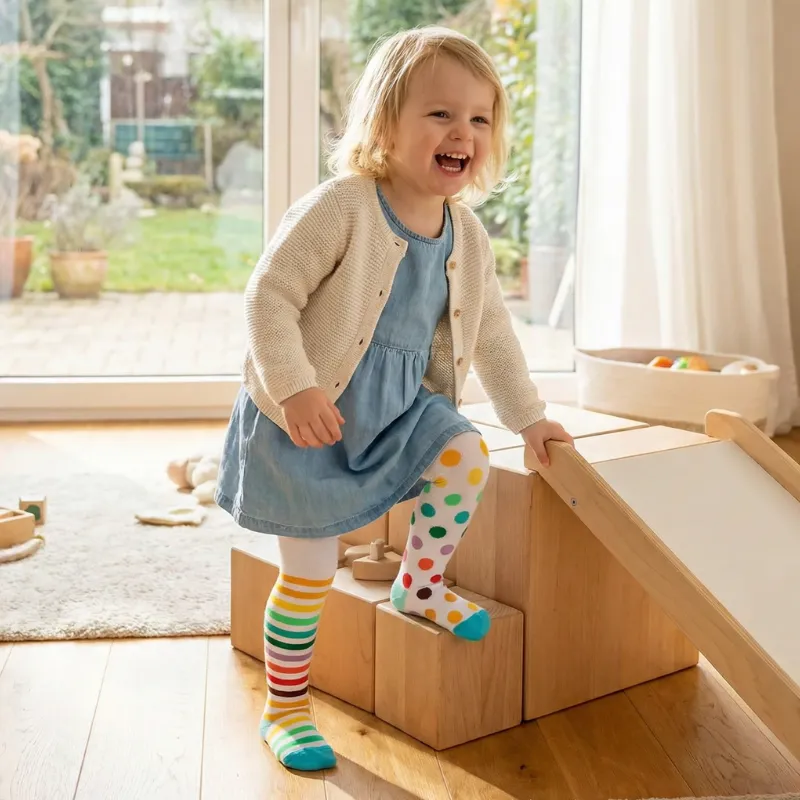 A lányom imádja ezeket a harisnyákat! Minden reggel új színt választ, és annyira könnyű felhúznia egyedül is.