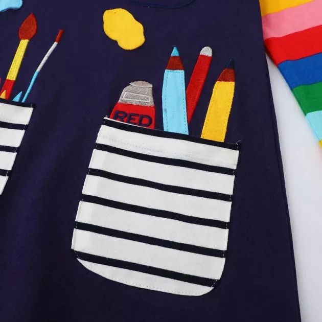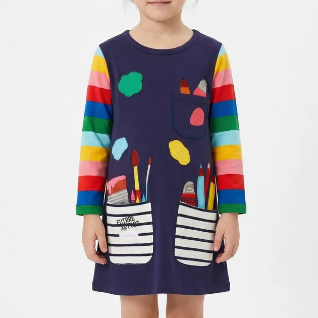 Ez a ruha megkönnyíti a reggeleket. A lányom saját maga választja, mert kényelmes, vidám, és a zsebek pont jók a kis plüssállatnak és a nassolnivalónak.
