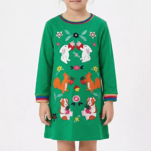 Az ötéves lányomnak vettem, és ez lett a kedvenc iskolai ruhája. Az anyag puha, a varrás erősnek tűnik, és a színek sok mosás után is élénkek maradnak.