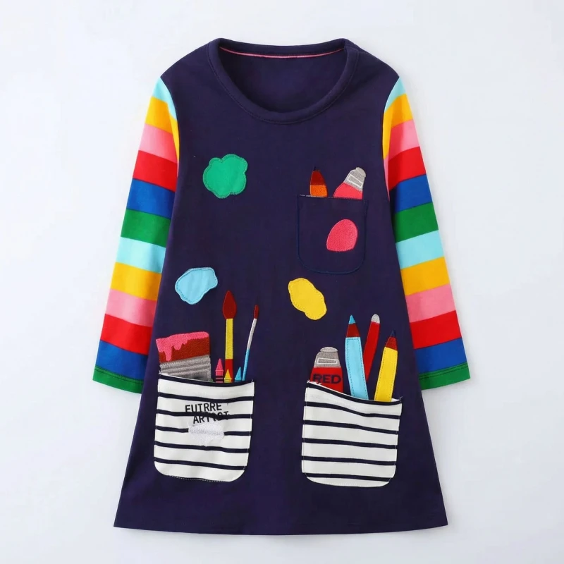 Cuki, pamut, hosszú ujjú ruha zsebekkel gyerekeknek