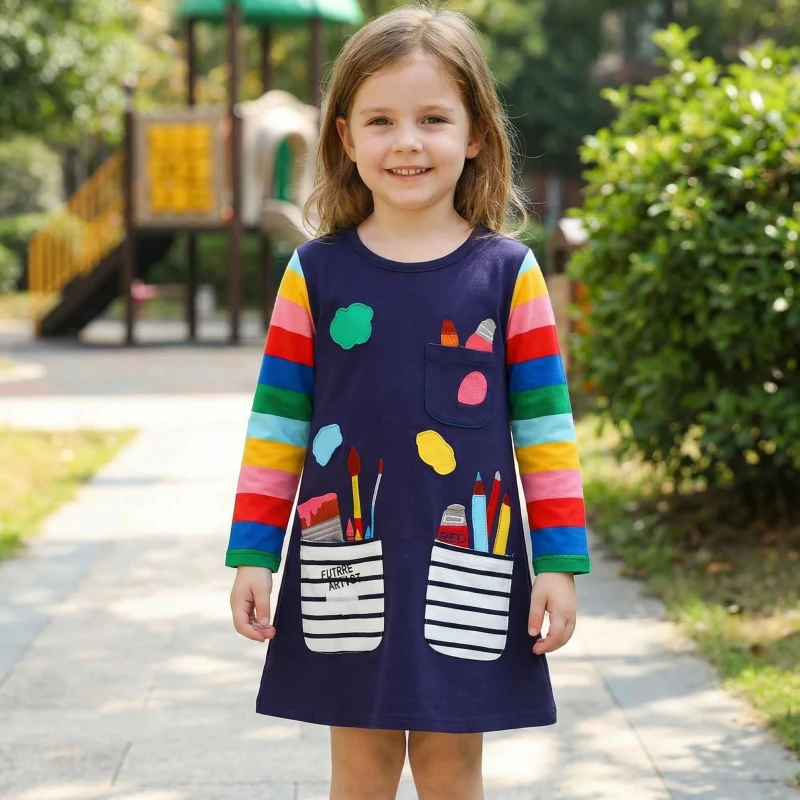 Az ötéves lányomnak vettem, és ez lett a kedvenc iskolai ruhája. Az anyag puha, a varrás erősnek tűnik, és a színek sok mosás után is élénkek maradnak.