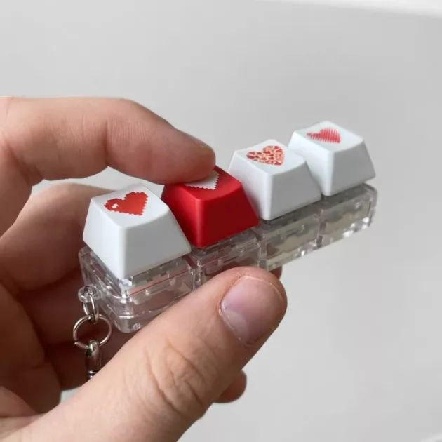 Elrejtettem az apró szíves billentyűzetet az unokám tolltartójában; azt mondja, segít neki nyugodt maradni, amikor órán nagyon fészkelődős kedve van.