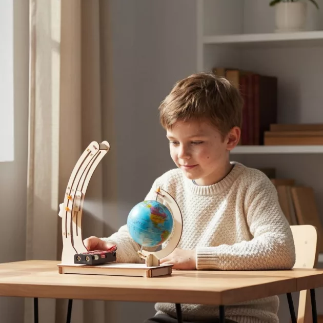 Az öcsém imádta ezt az összeállítást. Nagyon izgatott lett, amikor saját maga forgatta a kart, és látta a nappal és éjszaka váltakozását.