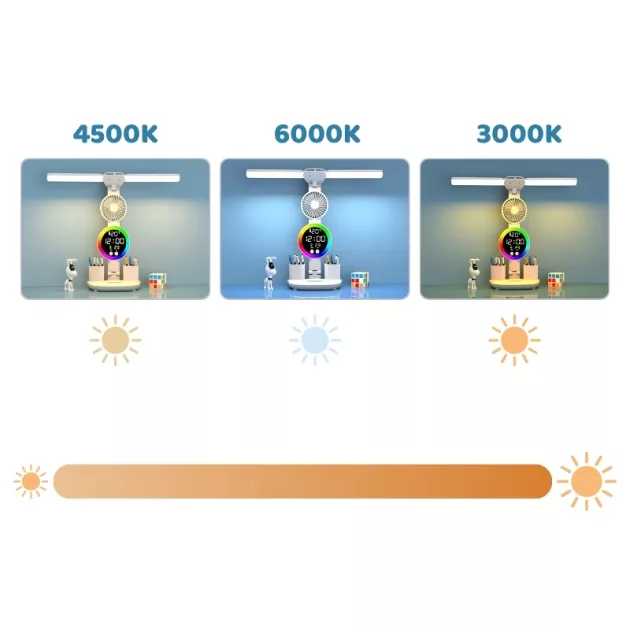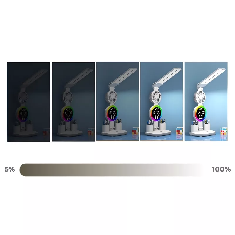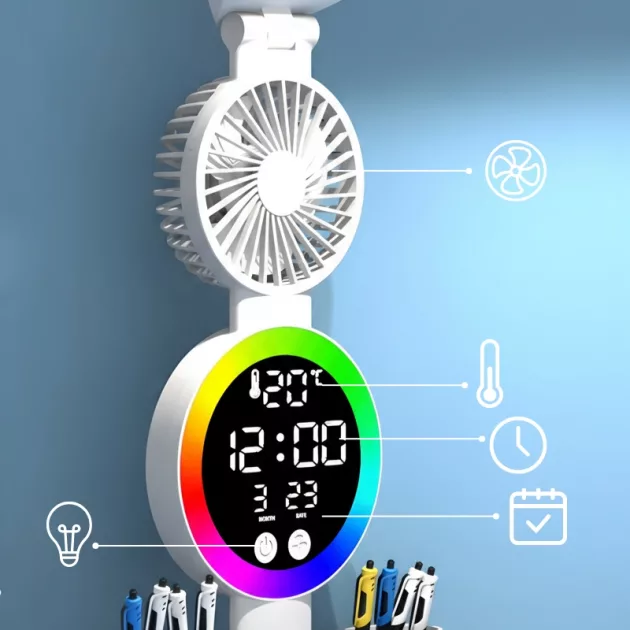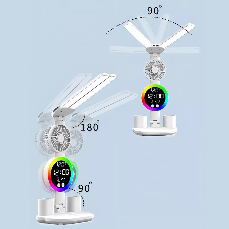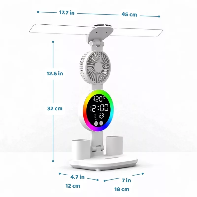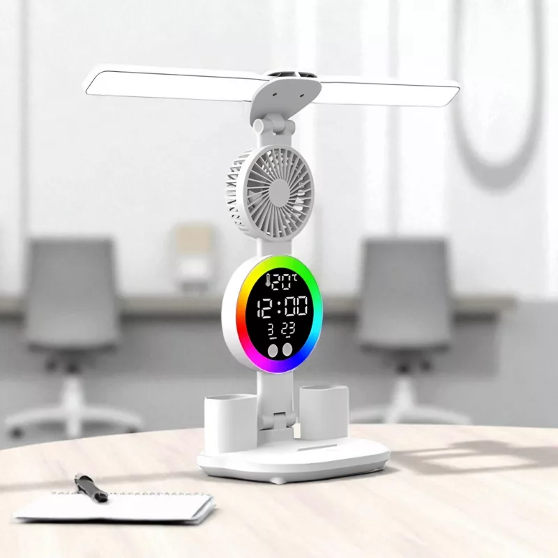 Ez a lámpa a kedvencem. A ventilátor nagyon hasznos, és szeretem, hogy az óra segít tartani az időt.