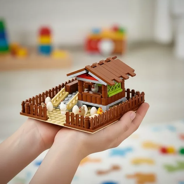 Az öcsémmel együtt építettük meg az egész farmkészletet, és rengeteget nevettünk! Nagyon jó móka volt, és most már a játékcsirkéinknek is van otthonuk.
