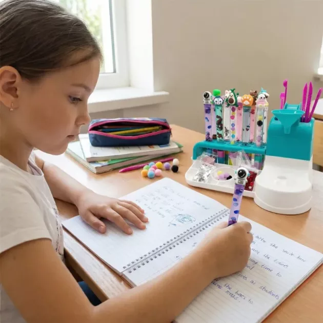 Nagyon jó volt saját, csillogó tollakat készíteni ezzel a készlettel! Az öcsém is csatlakozott, és mindketten színes tollakat kaptunk, amiket az iskolában is szívesen használunk.