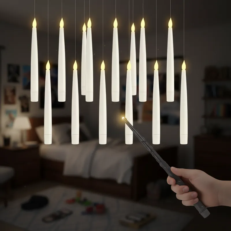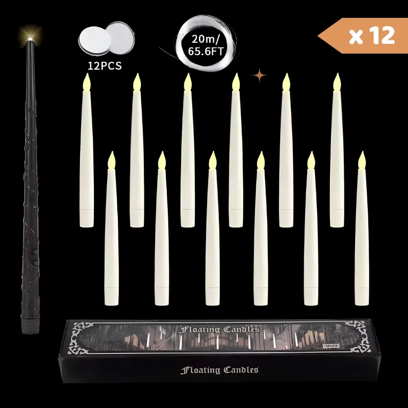 Lebegő gyertyafények mágikus pálcával, ijesztő dekorációk