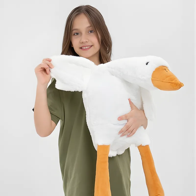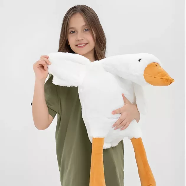 A játszószobába választottuk a libát, és remek döntés volt. A barátok mindig ezzel akarnak játszani, mert annyira puha és vidám a kinézete.