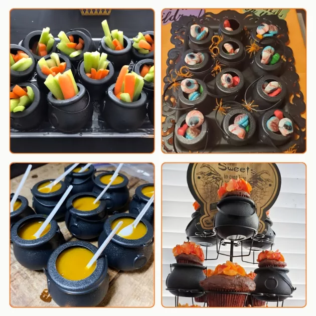 Boszorkányoknak tettettük magunkat, és telepakoltuk finomságokkal. Minden biztonságban maradt benne, amíg haza nem értünk. Szuper jó a szerepjátékhoz is!