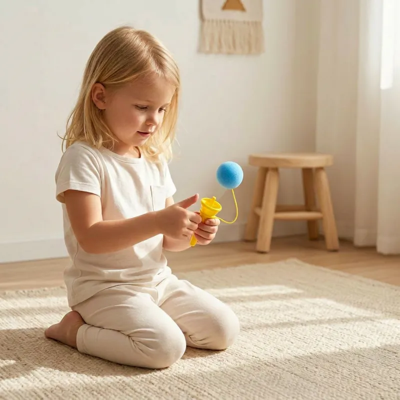A fiam benti játékidejére vettem. Az egyszerű húzd–és–lődd mozdulat javította a koordinációját, és imádott ujjongani, amikor végre egyedül is elkapta a labdát.