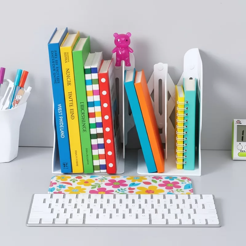 Ez a könyvtartó sokkal könnyebbé teszi a házi feladatomat, mert minden papírom egyenesen áll, és nem kell keresgélni közöttük.