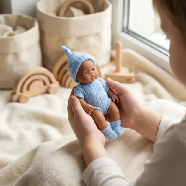 Sokat segít a kedvesség tanulásában. A fiam nagyon óvatosan bánik a mini babával, és büszkén mutatja meg, hogy vigyáz rá az oviban.