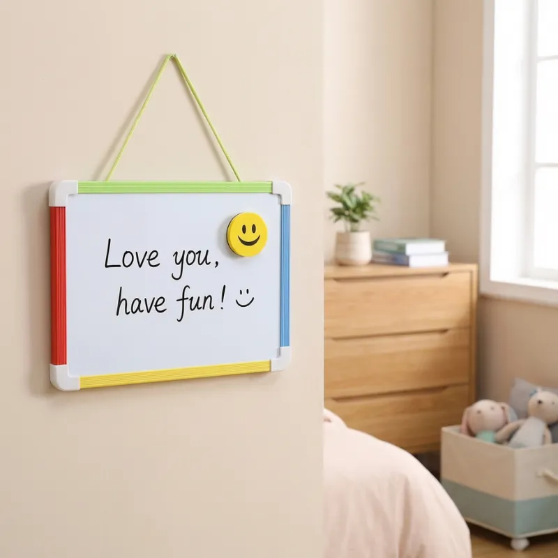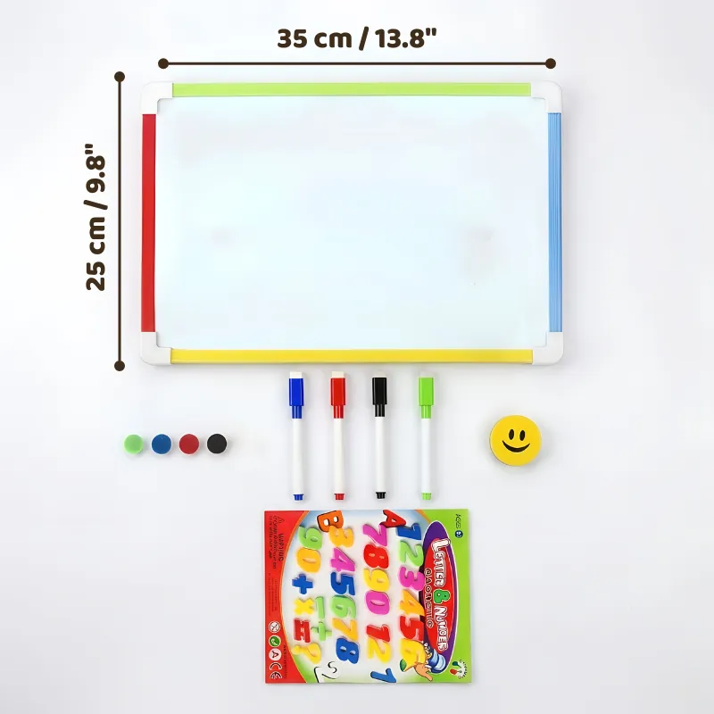 A vidám, színes dizájn alkotásra ösztönöz rajzolás vagy számolási feladatok közben. A mágneses elemek segítenek a gyerekeknek gyakorolni a matematikát, a betűket, vagy üzenetek firkálását. A táblát bármelyik szobában könnyen felakaszthatja emlékeztetők vagy játékos üzenetek számára. A könnyen tisztítható felületnek köszönhetően nincs rendetlenség és nem pazarolnak papírt nap mint nap.
