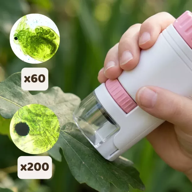 Vettem ezt az apró mikroszkópot a fiamnak, és most minden séta tudományos vadászattá válik. Megnézi a leveleket, köveket, még a blokkokat is. Az LED fény mindent kiemel.