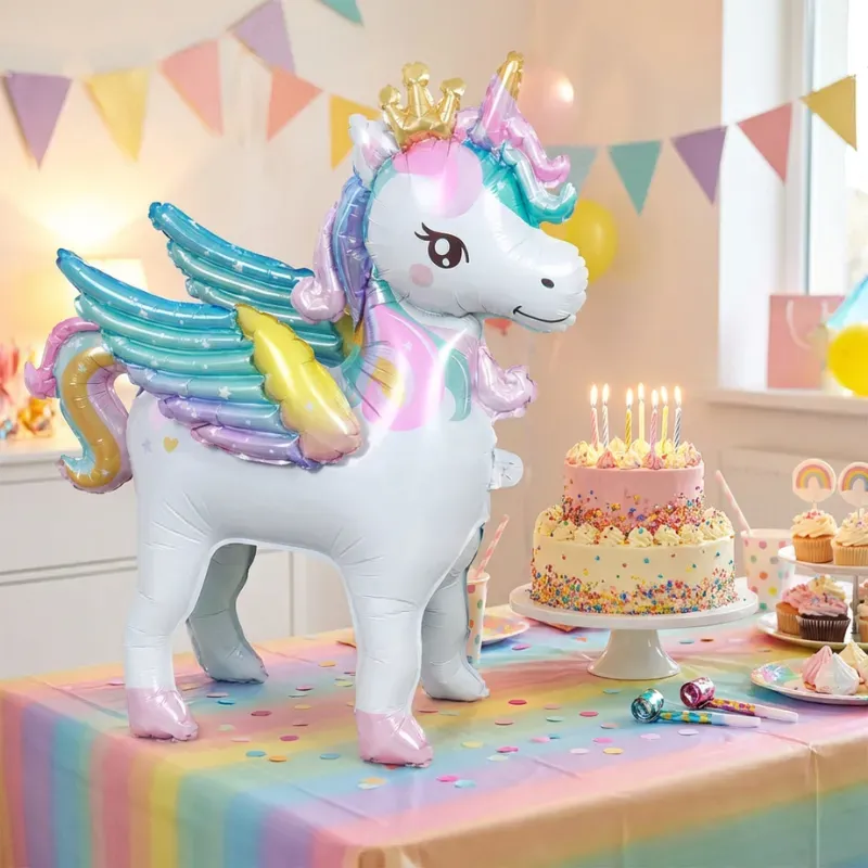 Ez a nagy, fényes unikornis egy egyszerű otthoni tortából is valami igazán különlegeset varázsolt. Gyorsan felfújtam, és a szoba hirtelen teljesen bulira késznek érződött.