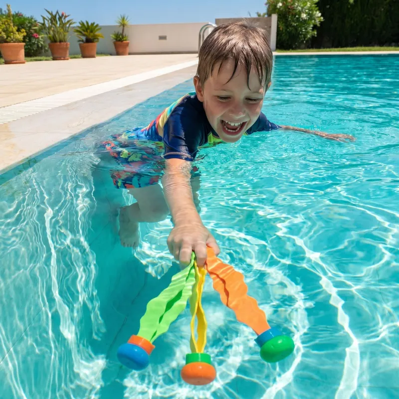 Ezek a búvárjátékok teljesen megváltoztatták a fiam úszóleckéit. Az élénk színek újra és újra lecsalogatják a víz alá, és a légzésszabályozása rengeteget javult.