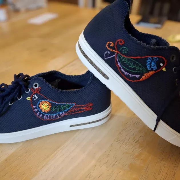 A madarak és lepkék igazán menővé tették a farmerdzsekimet! A kisöcsémmel együtt próbáltuk ki a hímzést, és mindketten jól szórakoztunk.