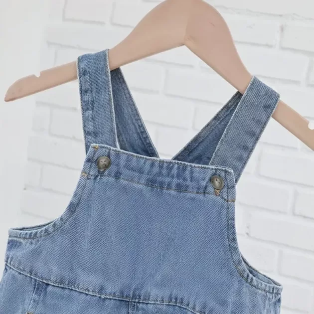 A kék farmer kertésznadrág megkönnyíti a reggeleket a családomnak. Kényelmes biciklizéshez és önállóan is fel tudom venni. Legjobb játszós ruha.