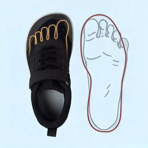Szabad mozgás - A lábujjak könnyen szétterülnek, csökkentve a nyomást és a kidörzsölődést. Az egészséges lábfejlődést a széles kialakítás segíti elő.