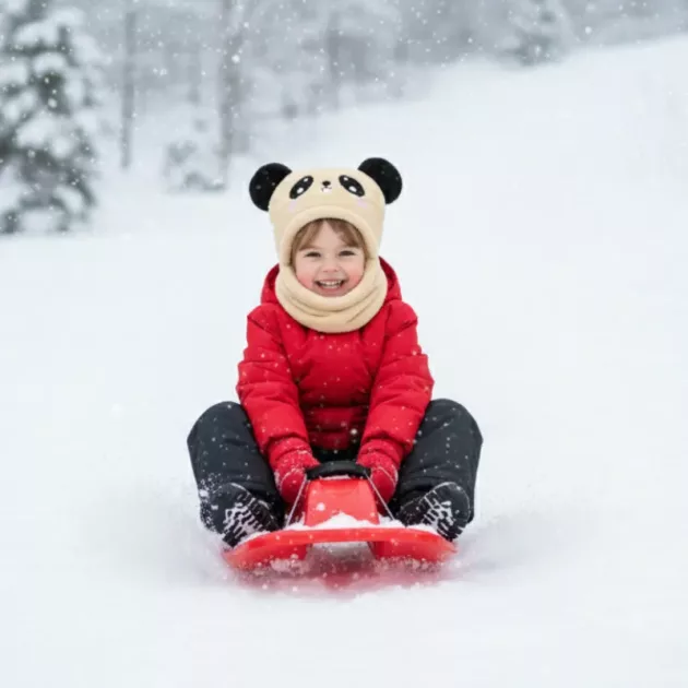 Ez a meleg balaklava sokkal könnyebbé teszi a reggeleket. Nincs több elhagyott sál, és a gyerek igazán cuki a kis panda fülekkel.