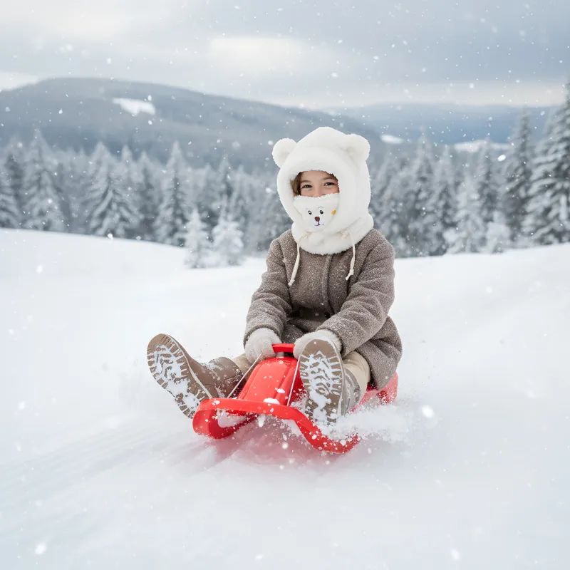 Szánkózáshoz használjuk ezt a bolyhos kapucnit, és nagyon meleg. Az anyaga kellemes, és megvédi a fiamat a hidegtől.