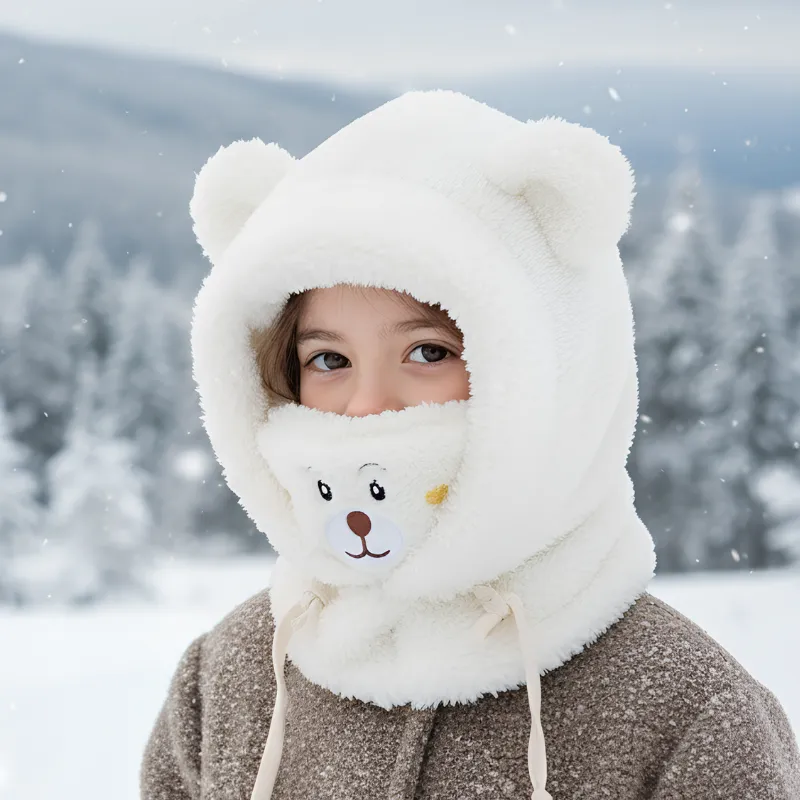 Nincs többé kipirult arc a széltől! A macis kapucni meleg és nagyon aranyos. Még a válogatós ötévesemnek is tetszik.
