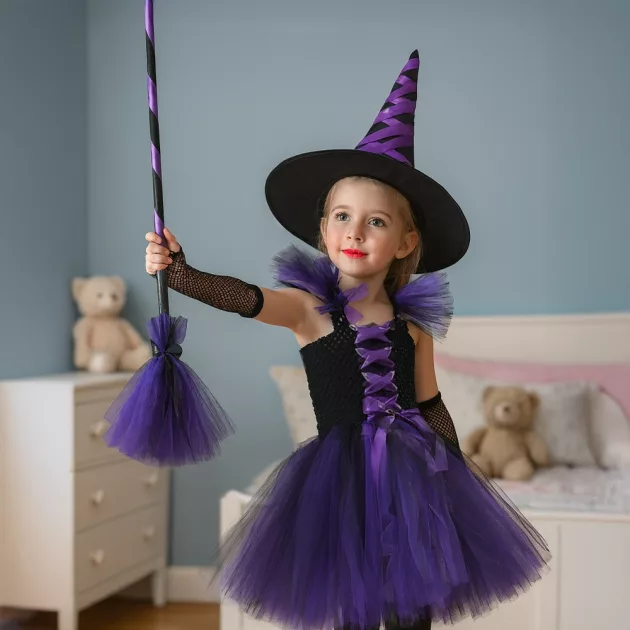 A gyerekem ebben ment az iskolai Halloween buliba, és mindenki imádta! Napokig magánál tartotta a seprűt, és a ruha még mosás után is újszerű.