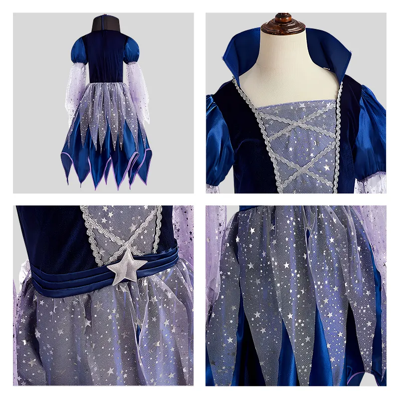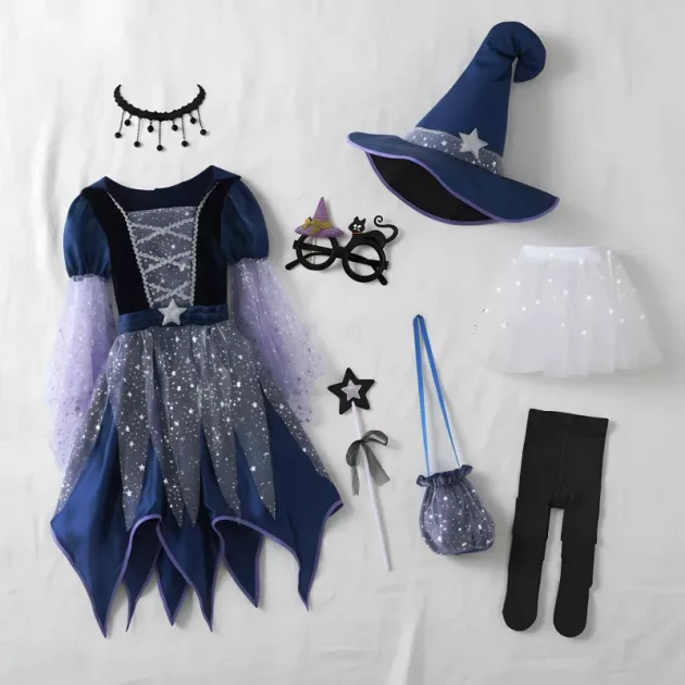 Adj gyermekednek önbizalmat, hogy ragyoghasson minden ünnepen! Csillogó részletek és gazdag színek teszik különlegessé az öltözködést. Kényelmes viselet a puha anyagnak köszönhetően, egész napos vidám játékhoz. Minden szett tartalmaz egy hozzáillő kalapot, varázspálcát és praktikus táskát.